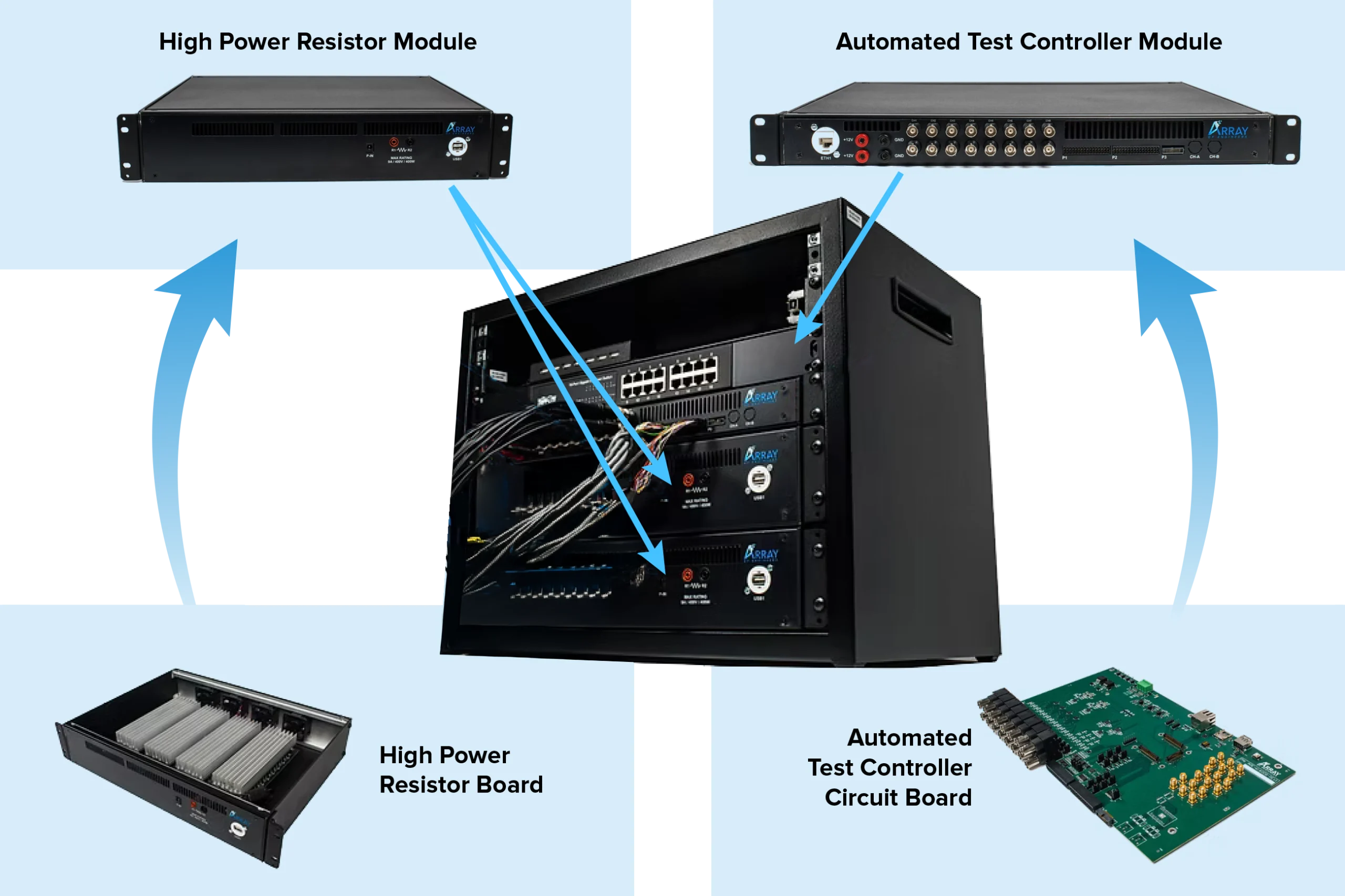- FPGA-driven hardware, automated test software, and test scripts provide complete test automation